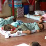 Estos niños viven en un barrio de invasión al lado de los rieles del ferrocarril de Mariquita. Todos los días van a la escuelita que financió un colegio en Holanda y donde les dan comidita :-) Llegamos a la hora de la siesta....