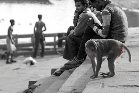 Varanasi ha sido lo más cercano que he visto al "Planeta de los simios". Los monos caminan por todos lados como Pedro por su casa. Siempre atentos a que cualquier humano se descuide para quitarle